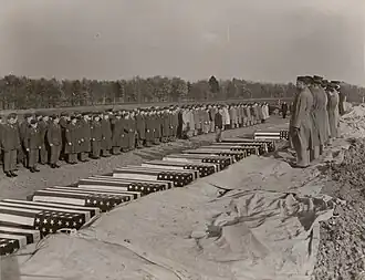 - ^ The numbers differ because one headstone is over a grave with two servicemen, who could not be separately identified, and another is over a grave with three servicemen, for the same reason.
