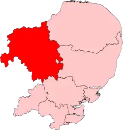 The Cambridgeshire constituency was re-created in 1994 from parts of Cambridge and Bedfordshire North and Suffolk. The re-established constituency consisted of the Westminster parliamentary constituencies of Cambridge, Huntingdon, North East Cambridgeshire, Peterborough, South East Cambridgeshire and South West Cambridgeshire.[3] Cambridge, Huntingdon, North East Cambridgeshire, Peterborough and South West Cambridgeshire had previously been part of the Cambridge and Bedfordshire North constituency, while South East Cambridgeshire had been part of the Suffolk constituency.
