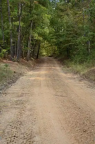 The Camden to Washington Road-Rosston Segment is a historic early 19th-century road section in rural Nevada County, Arkansas. It is located east of Rosston in Poison Spring State Forest, and is a former portion of County Road 10 extending east from that road's junction with County Road 47 (Kirk Road). The road was first cut c. 1825, and was never paved or given modern finishing, despite its continued use well into the 20th century. A crossing at Cypress Creek has been compromised by the activities of beavers, and the road is no longer completely passable, possibly excepting high-clearance off-road vehicles. The road section is one of the only sections of the historic post road which connected Washington and Camden to retain its 19th-century character.[2]