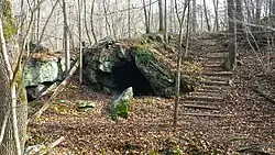 Camel's Den Cave is a small shelter cave located in the Patapsco Valley State Park, near Daniels, Maryland. It is known for being a tectonic cave and being the only publicly accessible cave in Howard County, Maryland.