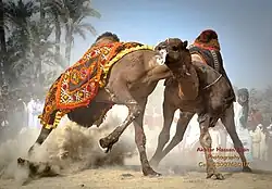 The events can occasionally be hazardous to spectators if the camels attempt to flee through the crowd.[7] On some occasions fights also break out between the owners of camels.[8]