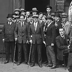 On the evening of 31 May 1923, the Catholic Marc Sangnier, the radical Maurice Violette, and the socialist Marius Moutet spoke at a meeting in the hall of learned societies against "French fascism".[36] However, the Camelots du Roi attacked the three men by beating them and coating them with tar and printing ink. The victims narrowly escaped treatment with castor oil.[37] The next day, the Communists, the Socialists, and, for the first time, the Radicals, who also expressed their deep dissatisfaction. The Radicals, through the voice of their leader Édouard Herriot, asked the government to reaffirm its republican character. Because of this aggression, the Camelots du Roi were nicknamed the "Apaches du Roy" in several press titles[38][39][40]