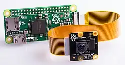 Camera plugged into the Camera Serial Interface connector on Raspberry Pi single-board computer