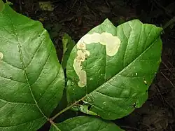 Leaf mine on poison ivy made by Cameraria guttifinitella
