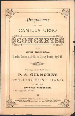 Camilla Urso (13 June 1840[1] – 20 January 1902) was a French-born child prodigy violinist, who became an American musician, "recognized as one of the finest violinists of the latter half of the 19th century."[2]