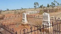 Camooweal Cemetery is at the end of Cemetery Road, east of the airport (19°54′51″S 138°07′47″E / 19.9142°S 138.1298°E). It is operated by the Mount Isa City Council.[47]