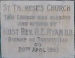 St Therese's Catholic Church was officially opened on 30 April 1961 by Hugh Edward Ryan, Bishop of Townsville.[23]