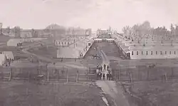 Built on land leased from Colonel S. H. Patterson,[3][4] it was named in honor of Joseph Holt, who became Buchanan's Secretary of War for about 60 days after John B. Floyd resigned. Holt strongly supported the Union.[5] Colonel Lovell Rousseau opened the facility in June 1861 in order to recruit Kentuckians, mostly Louisvillians, into the Union Army. A pine board with the words Camp Joe Holt was nailed into a tree by the entrance to the camp on the second day of operations by a Captain Trainor.[6]