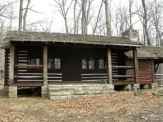 Camp Misty Mount is located in Catoctin Mountain Park near Thurmont, Maryland. The camp was built by the Works Progress Administration labor program in the development of what was then known as the Catoctin Mountain Recreational Development Area, and comprises 35 rustic log buildings including sleeping cabins, administrative buildings and lodges. All were built between 1935 and 1938. The buildings are a simplified version of the National Park Service Rustic style. Misty Mount is used as a public cabin-camping facility.[2]