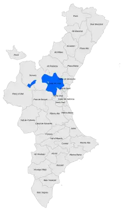 It comprises the lower reaches of the river Túria and its adjacent territories. Borders with the region of Camp de Morvedre and the counties of Horta de València. The south by the counties of Hoya de Buñol, west to the region of the Serranos, and north by the region of Alto Palencia.