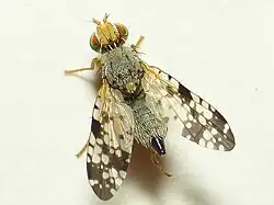 {{cite journal}}: Cite journal requires|journal=(help) - Doorenweerd, C.; Leblanc, L.; Norrbom, A.L.; Jose, M.S.; et al. (2018). "A global checklist of the 932 fruit fly species in the tribe Dacini (Diptera, Tephritidae)". ZooKeys (730): 19–56. doi:10.3897/zookeys.730.21786. PMC 5799784. PMID 29416395.