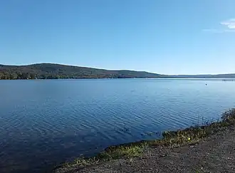 One mountain near the lake is Nine Hill, which is located on the northwest side of the lake. King Hill is located on the east side of the lake. South of King Hill is Panther Mountain.