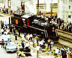 The locomotive subsequently became one of the most popular attractions in the association's collection, and it was later joined by CN 4-8-2 "Mountain" type No. 6060.[4] No. 1392 subsequently participated in several special events during its excursion career. During the 1986 World Exposition, No. 1392, along with No. 6060, was sent to Vancouver, British Columbia, to take part in the Steam Expo '86 event, where a plethora of other steam locomotives also participated.[4][5] Both locomotives returned to Edmonton, once the exposition was over.[4] In 1993, the APRA, which by then changed its name to the Alberta Railway Museum (ARM), celebrated the 25th anniversary of its founding, and No. 1392 participated in the event.[3] The locomotive also participated in the 35th anniversary in 2003.[3]