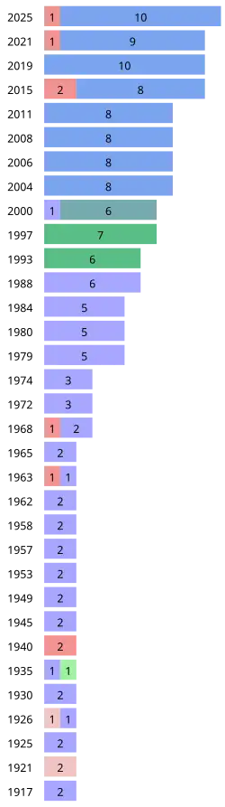 | New Democratic | 0 | 2 | 1 | 3 | |
