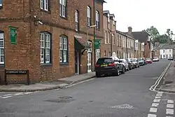 Previously the Jericho area was part of the Walton Manor farm owned by St John's College, Oxford. The Oxford Canal was opened in 1790 and the street was named Canal Street around 1870.[6] St Barnabas Church was consecrated in 1869. The Old Bookbinders Ale House pub in the street was also established in 1869.[7] There used to be a ferry (with ferry house) and coal wharves close to the north end of Canal Street.[8] Flooding has always been an issue, due to the proximity of the canal. Although most of the houses in the street are small two-storey terraced houses, Canal Street is now a popular inner-city residential street with high property prices due to its convenient central location.[9]