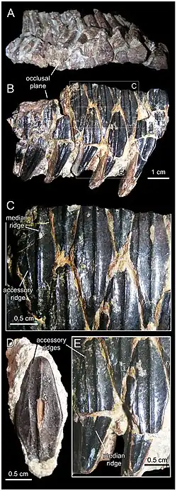 - ^ Fondevilla, V.; Dalla Vecchia, F.M.; Gaete, R.; Galobart, À.; Moncunill-Solé, B.; Köhler, M. (2018). "Ontogeny and taxonomy of the hadrosaur (Dinosauria, Ornithopoda) remains from Basturs Poble bonebed (late early Maastrichtian, tremp Syncline, Spain)". PLOS ONE. 13 (10): e0206287. Bibcode:2018PLoSO..1306287F. doi:10.1371/journal.pone.0206287. PMC 6209292. PMID 30379888.