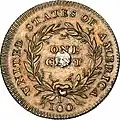 - ^ 1853 ring cents are restrikes dated 1850, although they can be distinguished from the original 1850 cents in that they use a different reverse design.