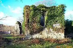 Candleston Castle, a fortified manor, was built in the 14th century. An enclosure, in the shape of a D, surrounded the structure.[5][6] The late-medieval manor may have been constructed on the site of a previous building, based upon the presence of remnants of an earlier wall.[2] The castle may have been built by Robert de Canteilupe III, who owned one ploughland at Candleston in 1320 according to the Despenser Survey of Glamorgan of that year.[7][nb 1] Robert III, who is not recorded after 1320, may have been succeeded by John de Cantilupe, who may have been the Abbot of Margam in 1315.[7][nb 2] Robert de Cantilupe III's daughter Joan, heiress of Candleston, married Sir William Horton of Tregwynt, Pembrokeshire.[7]