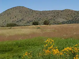 The Canelo Hills are a range of low mountains or hills in eastern Santa Cruz County, Arizona. The range consists of a series of northwest–southeast trending ridges extending from the Sonoita Creek valley southwest of Sonoita to the Parker Canyon Lake area in southwest Cochise County, Arizona. The Canelo Hills merge with the Huachuca Mountains to the southeast. The San Rafael Valley lies to the southwest of the range and the Patagonia Mountains lie to the west across the Harshaw Creek valley. The Canelo Hills Cienega Reserve and the ghost town of Canelo, Arizona, are located on the eastern side of the hills.