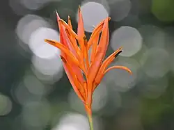 Generally curved, orange, small (4–7.5 cm long) flowers with free part of staminodes erect, floral bracts mostly caducous, and upper side of leaves often dark brown to black in herbarium material, lower side more or less lanuginose. In addition, the seeds are ellipsoid and relatively small (4–7 × 2–4.5 mm).