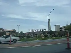 The Cannery opened on the night of January 2, 2003, with hundreds of guests in attendance.[11][12] The property is themed after a 1940s cannery, post-World War II, with architectural features such as industrial beams and exposed metal columns.[13] The exterior features a 120-foot smokestack.[6][11] A brewery theme was previously considered before evolving into the final design.[14]
