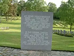 The German War Graves Commission (Volksbund Deutsche Kriegsgräberfürsorge or "VDK") made the necessary arrangements and the inauguration and dedication of this cemetery – which is maintained under the inter-government agreement by the Commonwealth War Graves Commission – was inaugurated and dedicated in June 1967. It contains a total of 4,747 graves. The deceased are mostly German and Austrian,[2][3] and a number of World War II Ukrainian volunteers, captured when in German service, are also buried here.[4]