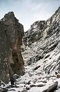 • Omega: 5+, 3 pitches. Mixed climbing. Hardest ice climb in the region. First ascent by John Bouchard and Rainsford Rouner in 1976.