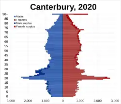 - ^ a b UK Census (2021). "2021 Census Area Profile – Canterbury Local Authority (E07000106)". Nomis. Office for National Statistics. Retrieved 5 January 2024.