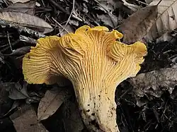 Cantharellus californicus, also called the California golden chanterelle,[2] mud puppy, or oak chanterelle, is a fungus native to California, United States.[3] It is a member of the genus Cantharellus along with other popular edible chanterelles. It is generally similar in appearance to C. cibarius and C. formosus except for its large size at maturity.