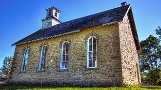Canton School is a historic one-room schoolhouse located in the unincorporated community of Canton, Iowa, United States. This school building was built in 1877 of locally quarried, roughly-dressed limestone, laid in a random ashlar pattern. The main facade, however, is faced with concrete brick that is original to the structure. What is unusual about this building is its decorative elements, as most one-room schoolhouses built in Iowa were plain.[2] The eaves and the two-stage wooden bell tower are edged with rather delicate wooden trim, and the windows are capped with concrete keystone hoods. The use of concrete is rather sophisticated for a building in the vernacular-folk architectural style in stone.[2] The building served as a school until 1966 when the area's school districts were reorganized. It served as a church until 1968, and it is now surrounded by a park.