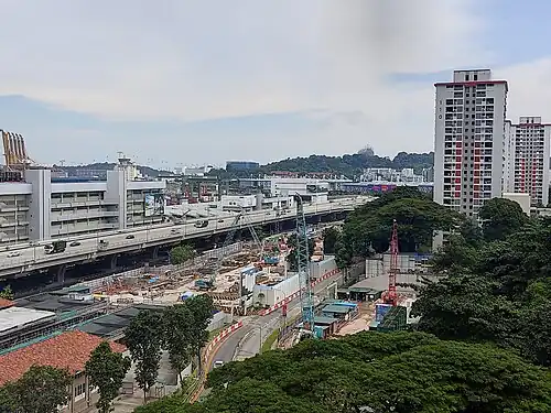 Tunnelling works for the CCL6 were completed on 12 January 2022, with a final tunnel breakthrough from Prince Edward Road station into this station.[12] The tunnels between this station and the adjacent Prince Edward Road station were constructed only 6.7 metres (22 ft) below the former Tanjong Pagar Railway Station. Prior to the tunnelling works, an extensive survey was conducted to ensure that the tunnels do not cross through the building's foundations. Structures were erected to protect the railway station's facade and interior, and monitoring instruments were installed to watch out for any building settlement.[13] To construct the tunnels to Keppel station, the Keppel viaduct had to be closely monitored while underpinning the viaduct with new micro piles. Three bored piles were removed for the tunnelling works.[14]