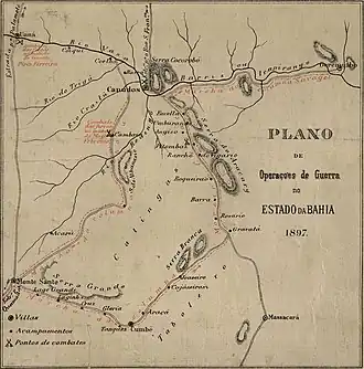 Map of the location of the fighting. The northern part is now flooded by the Cocorobó Dam