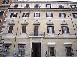 Related to the main families of the Roman nobility at the beginning of the sixteenth century with Bruto and Marcello, the family reached the height of its fame as part of the Capitoline nobility thanks to the gallantry and the profession of arms, both deeply rooted among its members as Papirio, Cencio and Camillo.[9][10][11] With Marcello's son Biagio, who – among others – participated to the battle of Lepanto on the orders of Marcantonio Colonna and could gain more than 100,000 scudi from his occupation as man-at-arms, the family reached the apogee of its wealth, buying the estates of Catino and Poggio Catino and building the palace which became its residence.[12] This was perhaps designed before 1593 by Giacomo Della Porta, and had its main facade along Piazza Campitelli.[13] In front of the palace lay the church of Santa Maria in Campitelli, where many of the Capizucchis are buried in the family's chapel, whose existence is attested since 1390.