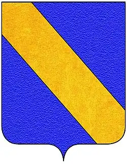 | Shield | azure, a bend or |
