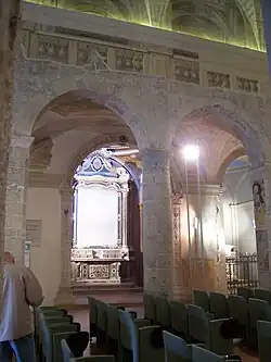 During the seventeenth century, the chapel was reorganised along baroque lines, with a new roofing dome built with a lantern. In 1805, the church and the adjoining Franciscan monastery were closed; just before that, the tomb of Luigi Caprioli was dismantled. Its relief, the Caprioli Adoration, ended up in the high altar at the Church of St Francis of Assisi in Brescia, where it is today.[1] The paintings in the chapel were moved to the Diocesan Museum of Brescia. Following the total renovation of the church in 2010, the chapel houses exhibition panels on the history and architectural elements of the church.