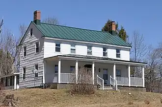 The Captain Samuel Allison House is located on a rural stretch of New Hampshire 101 west of Dublin center, on the north side of the road a short way east of its junction with Charcoal Road. It overlooks a portion of Howe Reservoir located south of the road, and has fine views of Mount Monadnock. It is a 2+12-story wood-frame structure, with a side-gable roof, end chimneys, and a clapboarded exterior. Its main facade is five bays wide, with sash windows arranged symmetrically around the main entrance. The entrance features Federal style sidelight windows and a semi-oval transom. A single-story hip-roof porch extends across the front, supported by square posts.[2]
