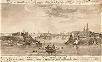 Since it was not occupied by the Portuguese, the region of Guanabara Bay experienced an attempt at colonization by the French between 1555 and 1567, known as France Antarctique. In response, Portugal founded the city of São Sebastião do Rio de Janeiro in 1565 and, in 1567, established the Royal Captaincy of Rio de Janeiro, appointing Estácio de Sá as its first representative. He died later that same year.[1] In 1570, the then governor of the Captaincy of Rio de Janeiro, Antônio Salema, assembled an army of Portuguese troops supported by catechized indigenous people to eliminate the French-Tamoio dominance that had persisted for twenty years along the coast. Fearing the loss of their territories, the Tamoios, who remained allied with the French, were largely defeated during the conflict known as the Cabo Frio War, which ended in 1575.[3][4]