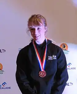 In 2021, she won the gold medal at the European Youth Championships. She set a new French record at the 2023 European Speed Climbing Olympic Qualifier with 6.68 s.[3]