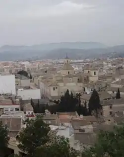 After the Treaty of Alcaraz (1243), the territory became part of a Castilian protectorate for roughly two decades.[4] Muslim inhabitants were dispossesed in the wake of the Mudéjar Revolt (1264–66).[5] The Order of the Temple held control over the place as a part of a bailiwick from 1266 to 1285, when it became a realengo ('royal demesne') holding, before returning to the Knights Templar at some point before the order was effectively dissolved, thereby becoming a realengo again.[6] Consolidated as territory near the border with the Kingdom of Granada, the main ways of life for a part of the population were husbandry (sheep and goats) and frontier skirmishes as land dedicated to cereal crops and vines was reduced in size.[7] Over the course of the middle ages, Caravaca sought to annex the land of the smaller town of Cehegín.[8] Caravaca was gifted to the Order of Santiago in 1344.[9]