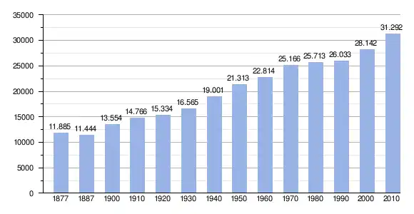 The municipality has 31,466 registered inhabitants. It has a density of 167.39 inhabitants per square kilometer.[9]