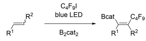 - ^ a b Jin, S.; Larionov, O. V. (2018). "A Radical New Look for Alkene Carboboration". Chem. 4 (6): 1205. Bibcode:2018Chem....4.1205J. doi:10.1016/j.chempr.2018.05.022. S2CID 103226343.
