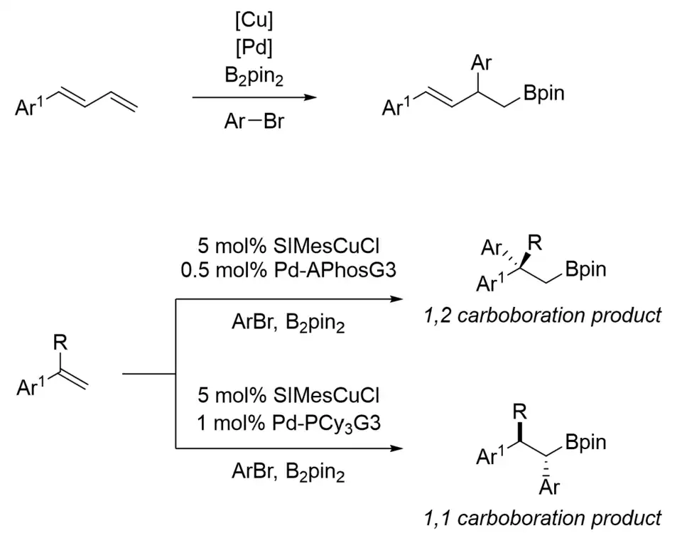 - ^ Dorn, S. K.; Brown, M. K. (2022). "Cooperative Pd/Cu Catalysis for Alkene Arylboration: Opportunities for Divergent Reactivity". ACS Catalysis. 12 (3): 2058–2063. doi:10.1021/acscatal.1c05696. PMC 9540610. PMID 36212545.