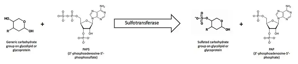 There are two major families of carbohydrate sulfotransferases: heparan sulfotransferases and galactose/N-acetylgalactosamine/N-acetylglucosamine 6-O-sulfotransferases (GSTs).[14][15]
