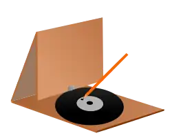 CardTalk is an inexpensive cardboard phonograph for playing recordings, mainly voice, made on vinyl records. The name was used by Global Recordings Network, a Christian missionary movement which used the device from the 1960s to play religious talks in remote parts of the world that did not have electricity. It consists of a flat piece of cardboard creased and folded into a triangle. The base has a nub to hold the record in place. The upper "arm" forms the apex of the triangle and has a needle which is placed upon the record. The record is spun using a small pointed object like a pencil. The cardboard picks up the impressions on the record and vibrates loud enough to be heard causing the "card" to "talk". Several cardboard phonograph playing devices were patented around the same period and these include Jauquet (1953) for a "Pocket Speaking Device", J.S. Wiener's "Sound Emitting Device" (1967) and the "Record Player" of Max Meier-Maletz (1972).[2][3][4]