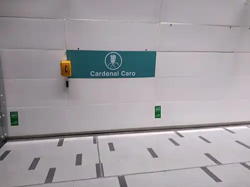 Cardenal Caro is an underground metro station of Line 3 of the Santiago Metro network, in Santiago, Chile. It is an underground, between the Los Libertadores and Vivaceta stations on Line 3. It is located at the intersection of Independencia Avenue with Cardenal Caro Street. The station was opened on 22 January 2019 as part of the inaugural section of the line, from Los Libertadores to Fernando Castillo Velasco.[3]