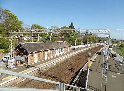Cardross railway station is a railway station serving the village of Cardross, Scotland. The station is 19 miles 50 chains (31.6 km) from Glasgow Queen Street, measured via Singer and Maryhill.[6] It is on the North Clyde Line between Dalreoch and Craigendoran, positioned on the banks of the north side of the River Clyde. The station is managed by ScotRail, who operate all services.