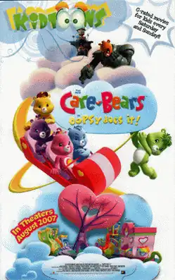 Care Bears: Oopsy Does It! is a 2007 American animated fantasy film released on August 4, 2007 by Kidtoon Films.[2] It was developed by American Greetings as part of the Care Bears' 25th anniversary, and produced by SD Entertainment.[3] Oopsy Does It is the first Care Bears film to not be produced by Nelvana, the Canadian company responsible for the previous feature-length installments and most of the television episodes. The movie was released on DVD on October 23, 2007. This film serves as a pilot episode of Care Bears: Adventures in Care-a-lot.