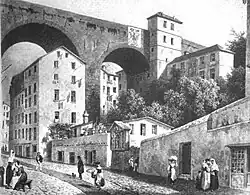 Carignano Bridge as seen from via del ColleCarignano Bridge and the area of Via Madre di Dio in the first half of the 19th century
