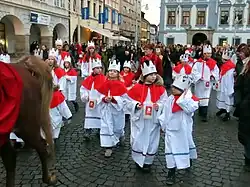 Children during Caritas' traditional three kings collection in České Budějovice in 2023.
