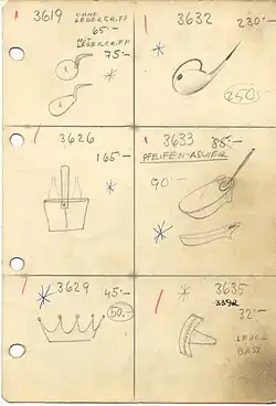 After World War II, he further expanded the workshop, which was supported by the design demands of the American occupying force.[3] Auböck adopted a strategy where a basic design had manifold varieties so that more than 500 new objects were produced in the workshop from 1946 to 1950.[3] These designs were influenced by Bauhaus modernism. His works on smaller household and office objects during this period made Auböck a cult hero among his contemporaries.[8]